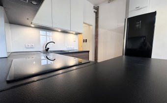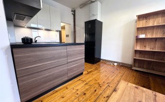 Kuchnia w pełni wyposażona w sprzęt AGD: piekarnik, lodówka, zmywarka, płyta indukcyjna.