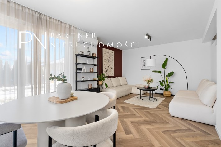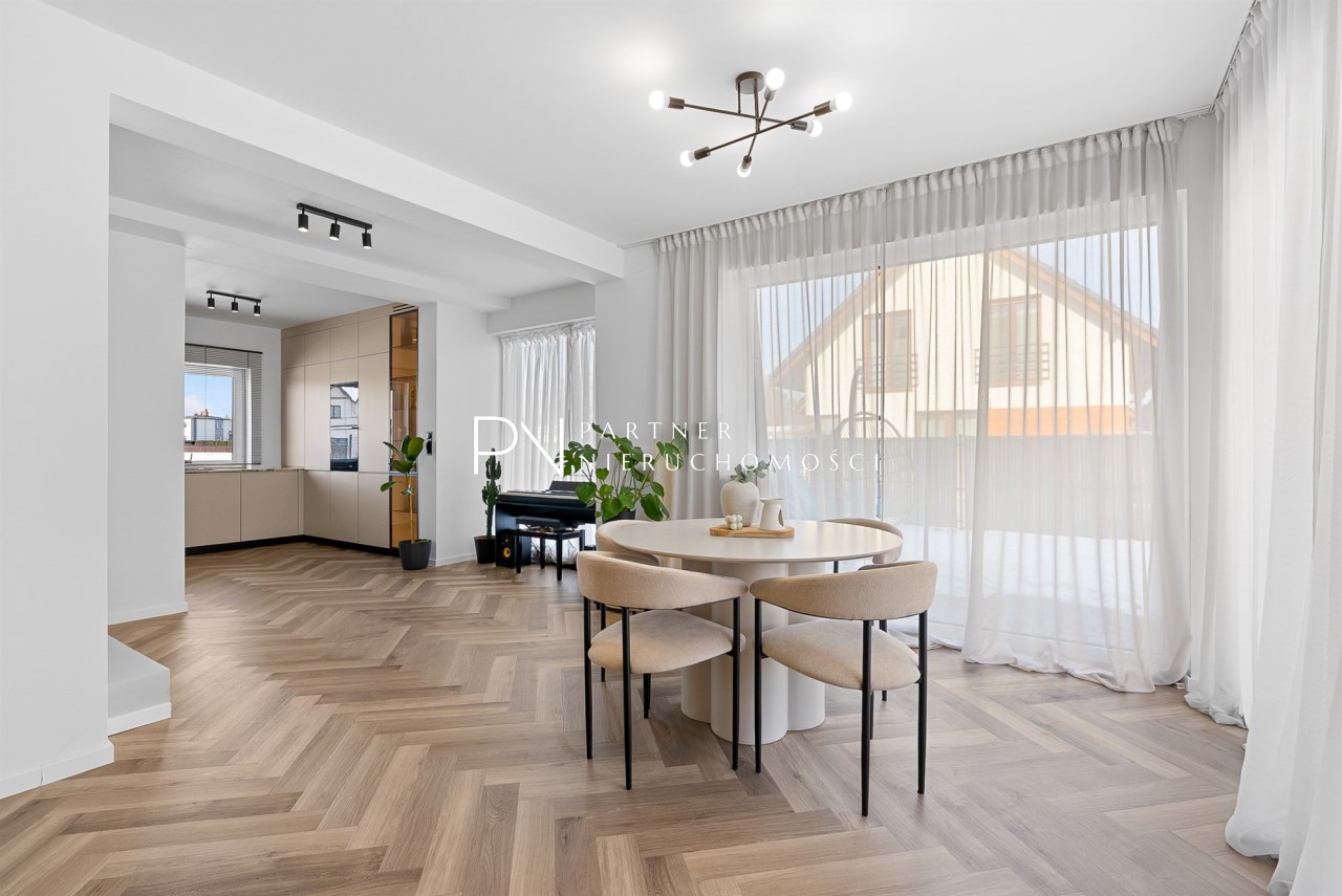Dodatkowym atutem jest fakt, że w cenie pozostaje częściowe umeblowanie oraz wyposażenie, co pozwala nowym właścicielom wprowadzić się bez konieczności ponoszenia dodatkowych kosztów na start i zachować spójny, dopracowany charakter wnętrza.