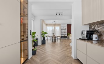 Wcześniej pozostawał w stanie deweloperskim, co pozwoliło na realizację wnętrz według aktualnych standardów i trendów.
