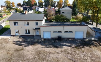 - Budynek administracyjny użytkowany jest na parterze na cele handlowo-usługowe a na piętrze na cele mieszkalne. Obiekt murowany z dachem dwuspadowym krytym papą o powierzchni zabudowy 130m2. Budynek z lat 60-tych. Okna PCV, posadzki płytki ceramiczne/ panele. Łazianki w płytkach, Instalacja elektryczna, wodno-kanalizacyjna częściowo wymieniona. Instalacja centralnego ogrzewania, pompa ciepła, klimatyzacja. Budynek ocieplony.