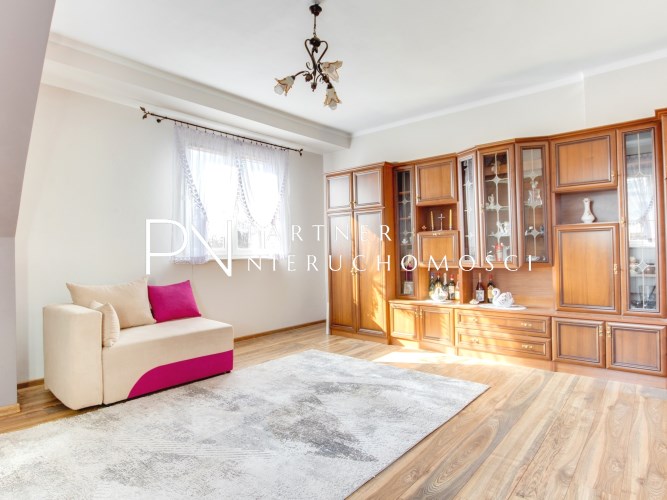 Wyjątkowego klimatu dodają urokliwe skosy obecne w salonie oraz łazience. Łazienka została wyposażona w dużą wannę, tworząc komfortową przestrzeń do relaksu. Rok temu mieszkanie zostało odświeżone – wykonano malowanie ścian, co znacząco podnosi standard. Wymieniona jest też instalacja elektryczna co daje bezpieczeństwo użytkowania. Do mieszkania przynależy duża piwnica zapewniająca dodatkową przestrzeń do przechowywania